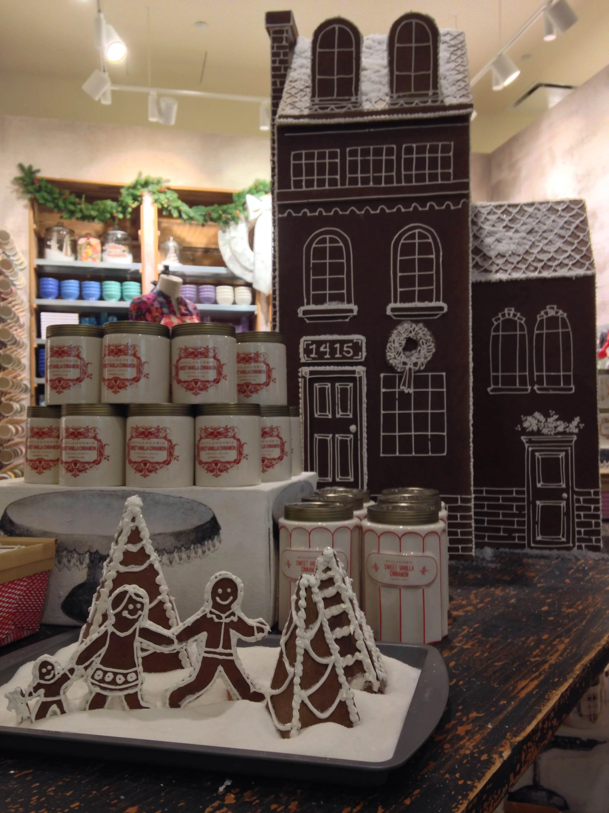 After four holiday seasons with Anthropologie, I can safely say that these gingerbread houses are my absolute favorite. Not only is it something I would decorate my own home with, but, they were really fun to make! Anthro is known for making ordinary into extraordinary and these cardboard and candy houses embody that DIY spirit!